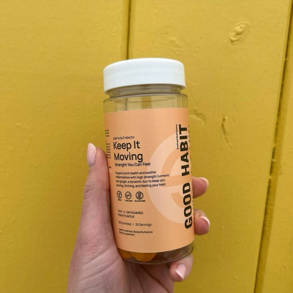 60 Peach Flavoured Gummies. Easy to take anytime, anywhere.